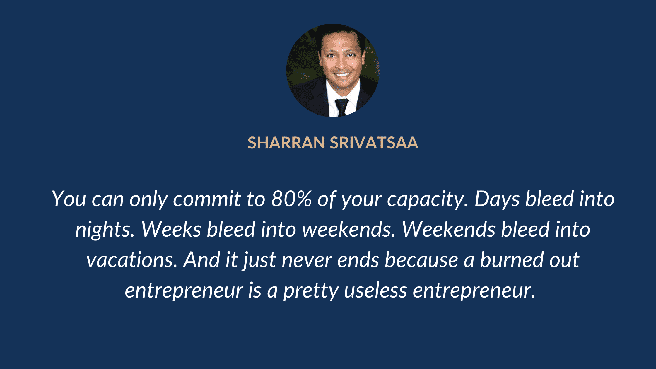 This is what allows you to grow, think, and create… otherwise everything bleeds into everything else. Days bleed into nights. Weeks bleed into weekends. Weekends bleed into vacations. And it just never ends because a burned out entrepreneur is a pretty useless entrepreneur.
